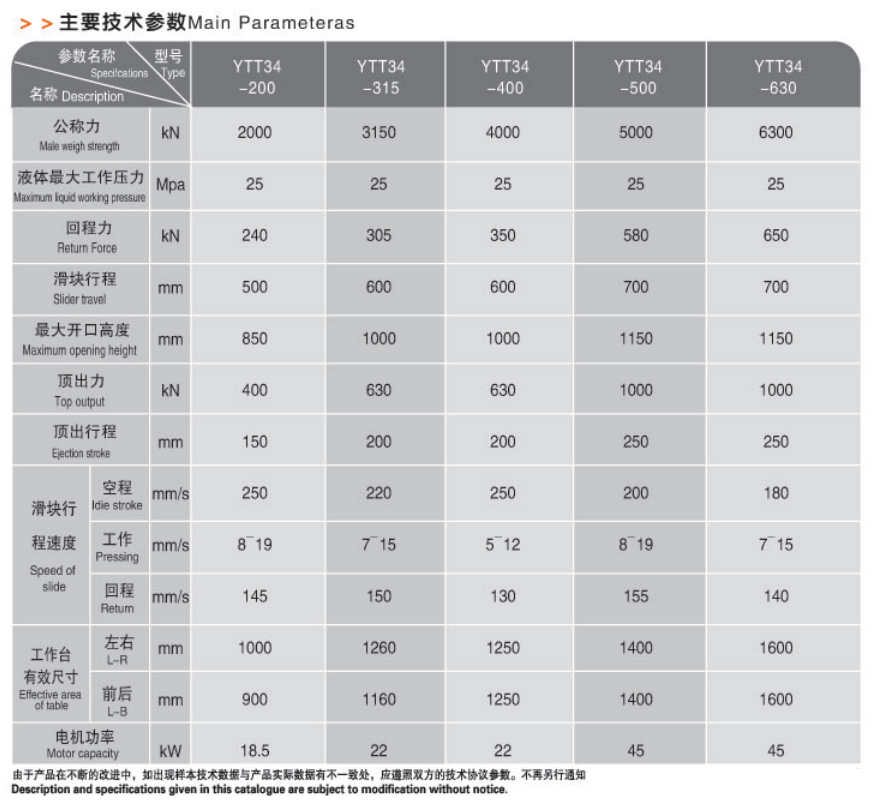 名称/名称/型号 Specicatians Iype YTT34 -200 YTT34 -315 YTT34 -400 YTT34 -500 YTT34 -630